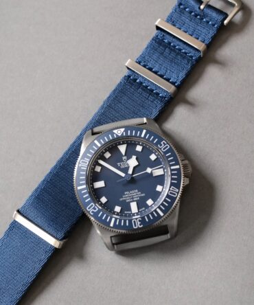 Denna modell kommer utan spänne och har runda hål i gummit och är lite tjockare in mot boetten och passar därför klockor med lite tjockare bandhorn, t.ex Tudor Black Bay (ej ceramic) och Pelagos i 42mm.