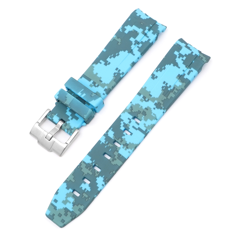 Klockband i gummi. Mjukt och följsamt. Bandet har ”curved ends” (böjda ändar) för att sluta tätt mot boetten.