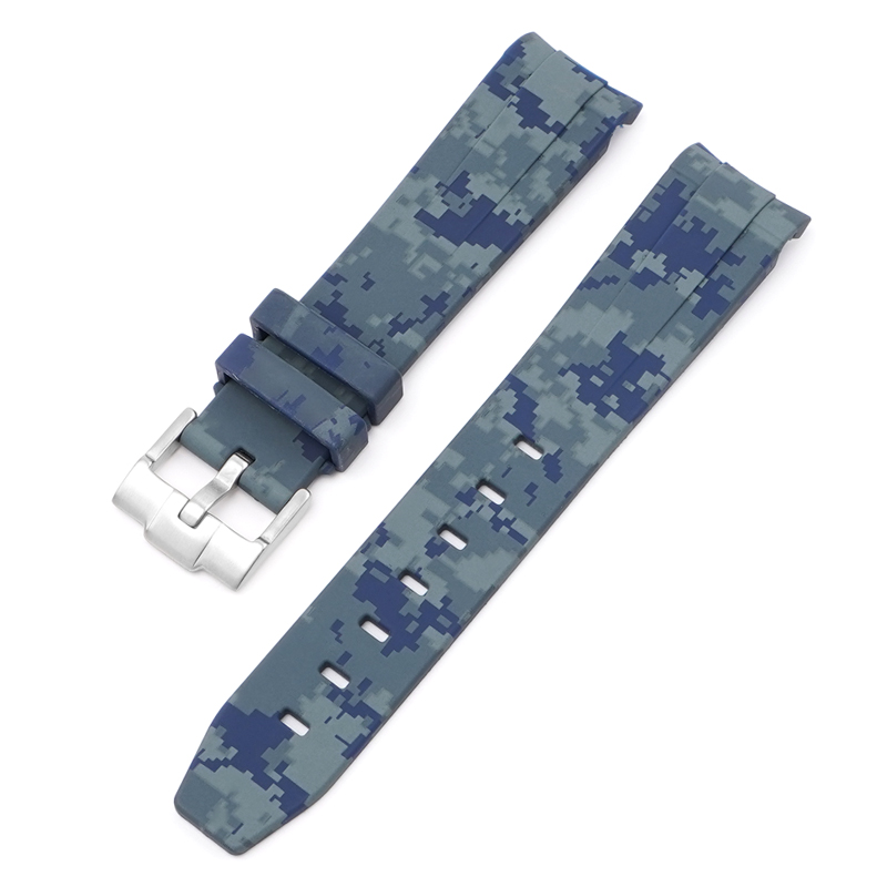 Klockband i gummi. Mjukt och följsamt. Bandet har ”curved ends” (böjda ändar) för att sluta tätt mot boetten.