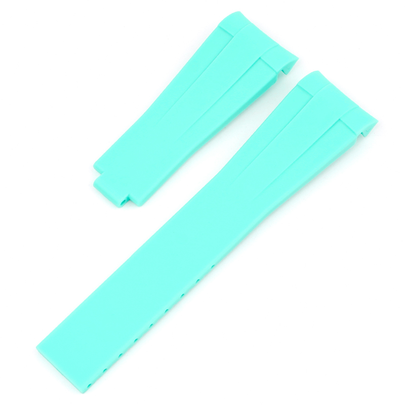 Klockband i gummi. Mjukt och följsamt. Bandet har ”curved ends” (böjda ändar) för att sluta tätt mot boetten.