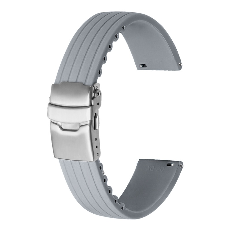 Gummi av silikon med bandstift av “quick release”-typ där verktyg inte krävs för byte av band.