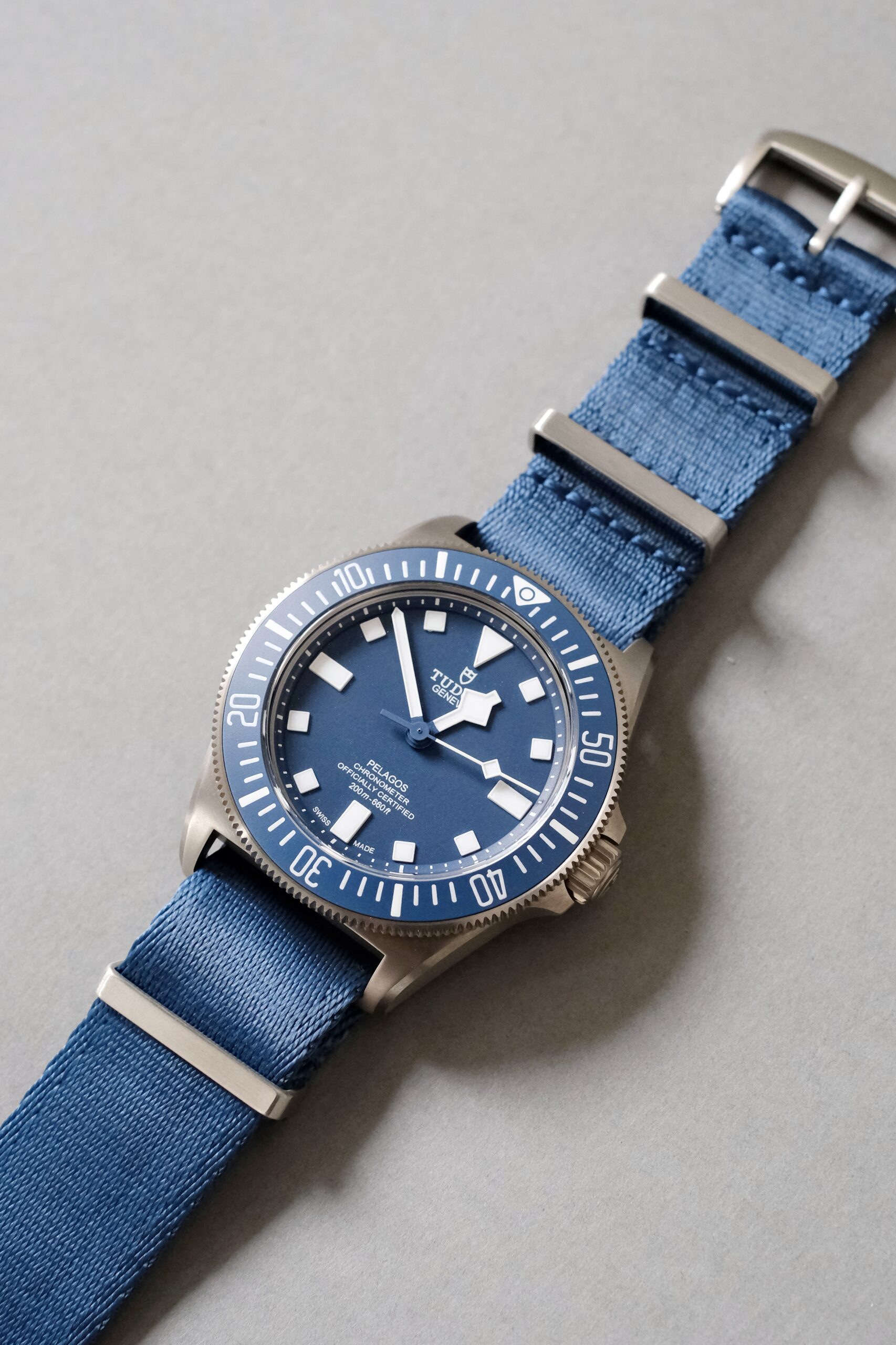 Ett lite kraftigare klockband av nylon. Borstat spänne och keepers.