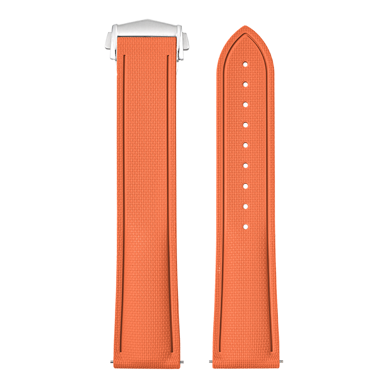 Detta klockarmband kombinerar den eleganta strukturen från segelduk med den slitstarka flexibiliteten hos premium FKM-gummi. Det är 100 % vattentätt, mjukt mot handleden och utrustat med ett bekvämt borstat viklås.