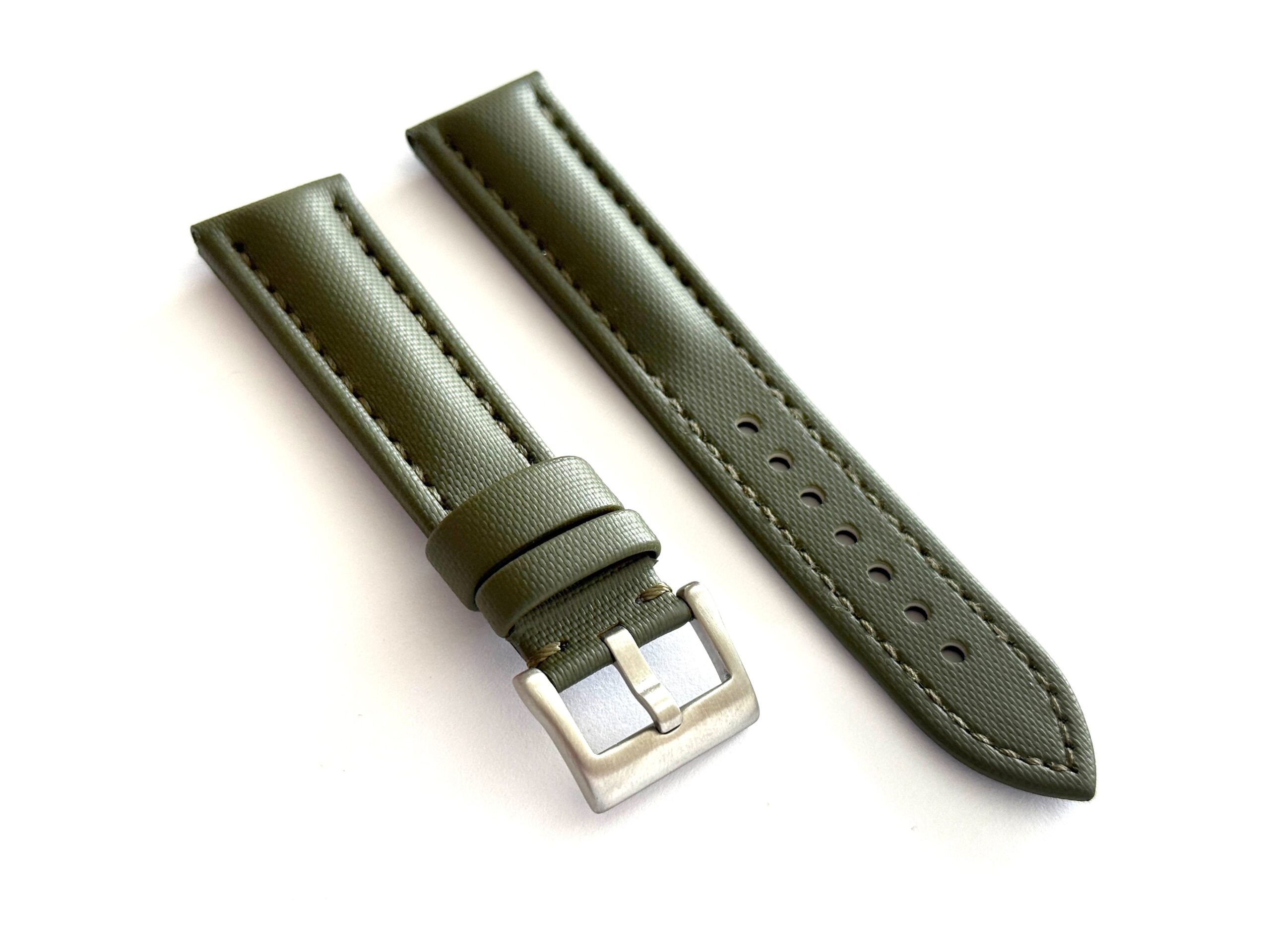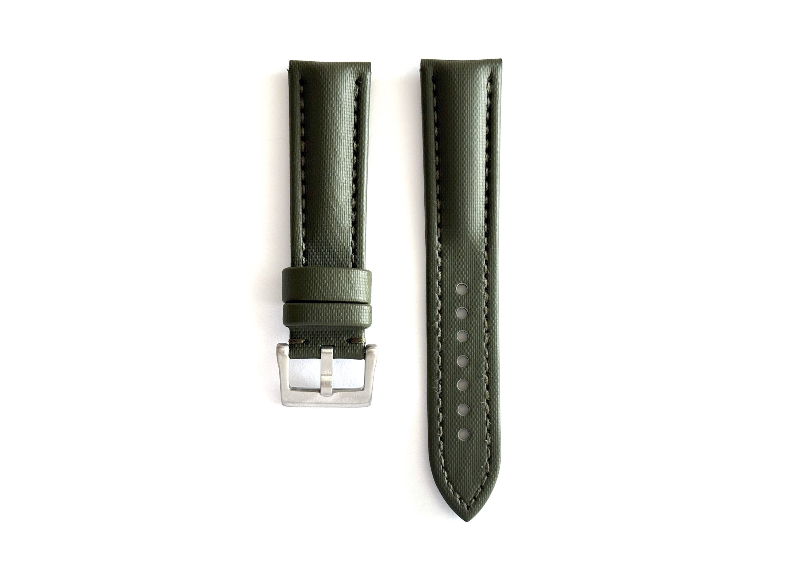 Sailcloth band med ovansidan av nylon och läder på undersidan.